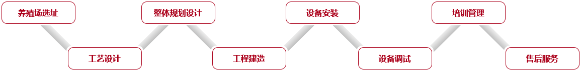 為客戶提供從養(yǎng)殖場選址、規(guī)劃設(shè)計、工程施工、設(shè)備安裝到后期培訓(xùn)維護等解決方案,周到細致的為客戶打造出具備國際先進水平及高性價比的現(xiàn)代化養(yǎng)殖場, 打造精品“交鑰匙”工程。根據(jù)不同區(qū)域的自然環(huán)境條件及客戶投資需求,因地制宜地采用適宜的生產(chǎn)工藝及流程布局,是養(yǎng)殖場生物安全、生產(chǎn)高效的根本。