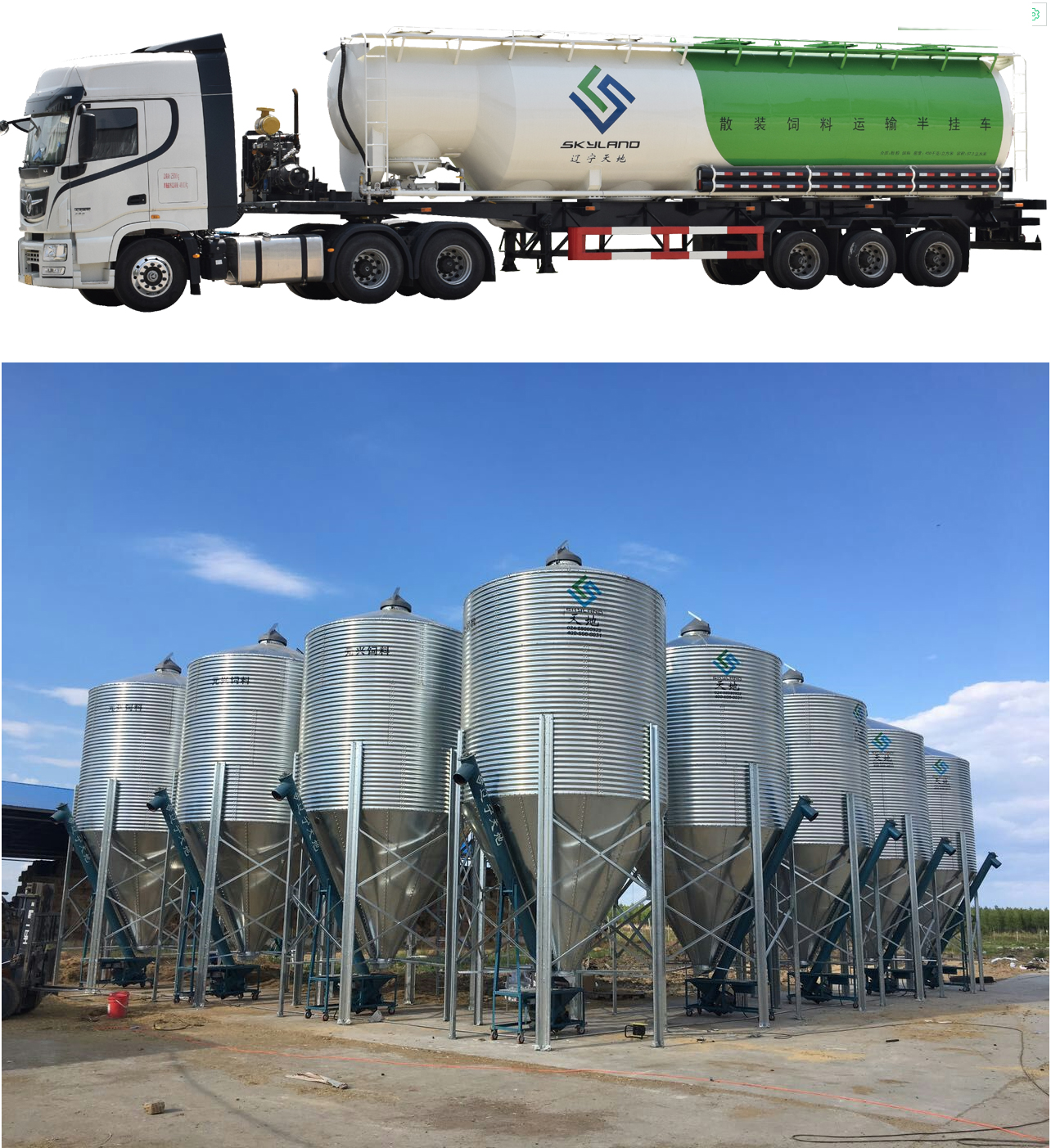 散裝飼料運輸車根據(jù)裝載質(zhì)量的不同分為“士”(裝載量15噸)“俠”(裝載量20噸)“神”(裝載量30噸)三種系列。主要優(yōu)勢是:“氣動輸送距離遠、全鋁材質(zhì)多拉不超載,風(fēng)送0殘留,沒有交叉污染。 天地料倉完全使用非標(biāo)定制設(shè)備,獨立自主設(shè)計、研發(fā)、試驗和投放市場。料倉主體的鍍鋅層達到275g/m2,其最顯著特點為整體采用沖壓、栓接、熱鍍鋅和達克羅處理等復(fù)雜工序,以此來保證料倉具有20年以上使用壽命